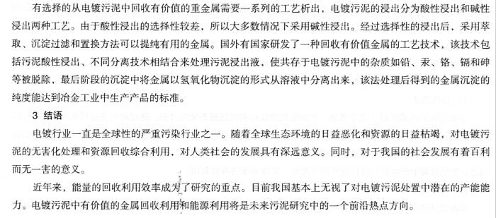 摘要——電鍍污泥含有一定量的銅、鎳、鉻、鋅等金屬,屬于危險(xiǎn)廢物。對(duì)其中的金屬(尤其是重金屬)進(jìn)行資源化利用,能有效地消除電鍍污泥重金屬的二次污染,同時(shí)也能帶來(lái)可觀的經(jīng)濟(jì)和環(huán)境效益。本文介紹了電鍍污泥的來(lái)源與分類,重點(diǎn)介紹了電鍍污泥的國(guó)內(nèi)外處理方法,為今后的研究提供一些思路,最大限度的減少重金屬污染。